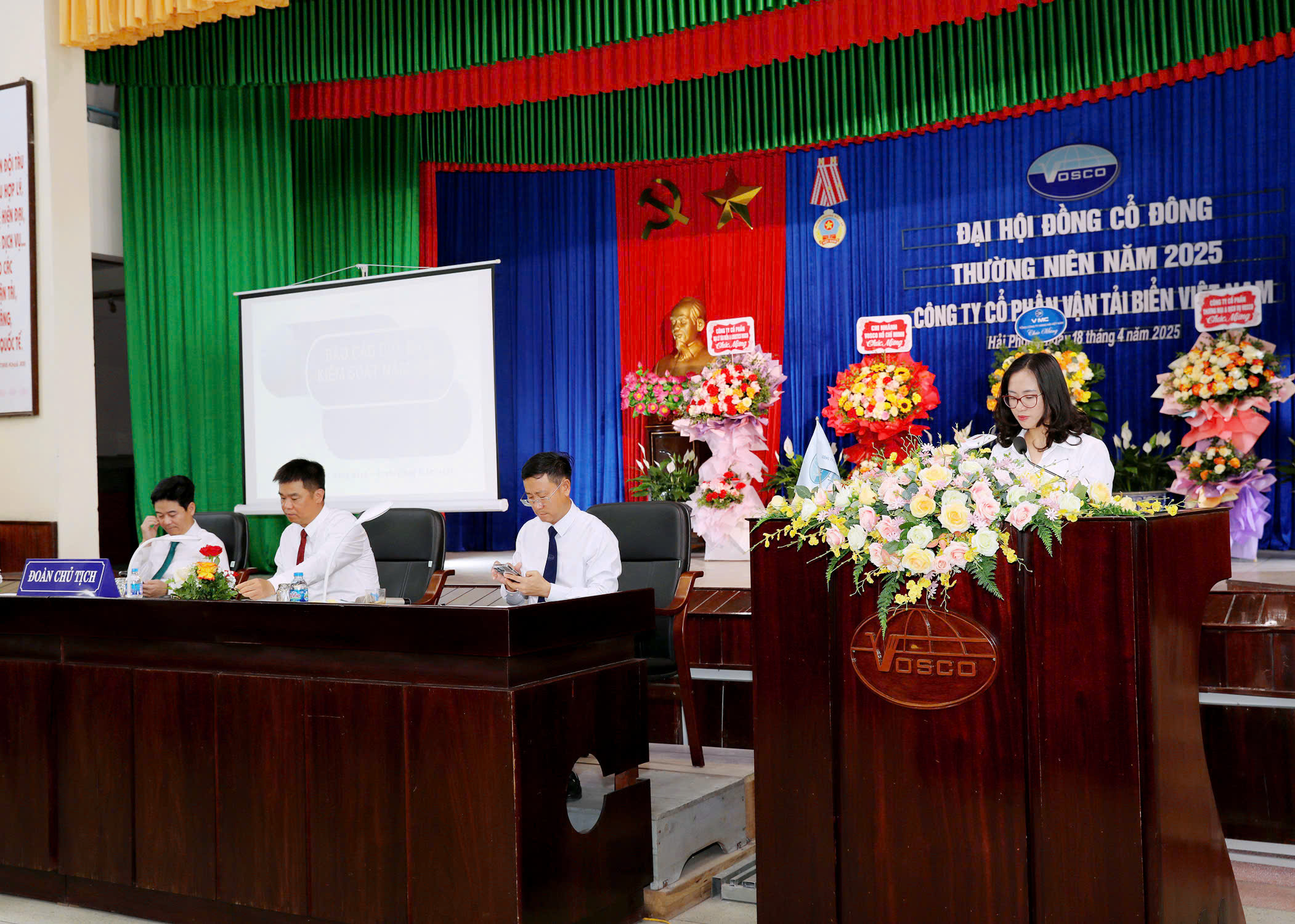 Đại hội có sự tham dự của đại diện các ban chuyên môn của Tổng Công ty Hàng hải Việt Nam (cổ đông lớn sở hữu 51% vốn điều lệ của VOSCO), Công ty TNHH Kiểm toán và Tư vấn UHY (là đơn vị kiểm toán báo cáo tài chính năm 2024); các thành viên Hội đồng quản trị, Ban Điều hành, Ban Kiểm soát, Kế toán trưởng, đại diện các đơn vị trong Công ty và 38 cổ đông, đại diện cho 71,83 triệu cổ phần sở hữu và được ủy quyền, bằng 51,31% số lượng cổ phần có quyền biểu quyết của Công ty.