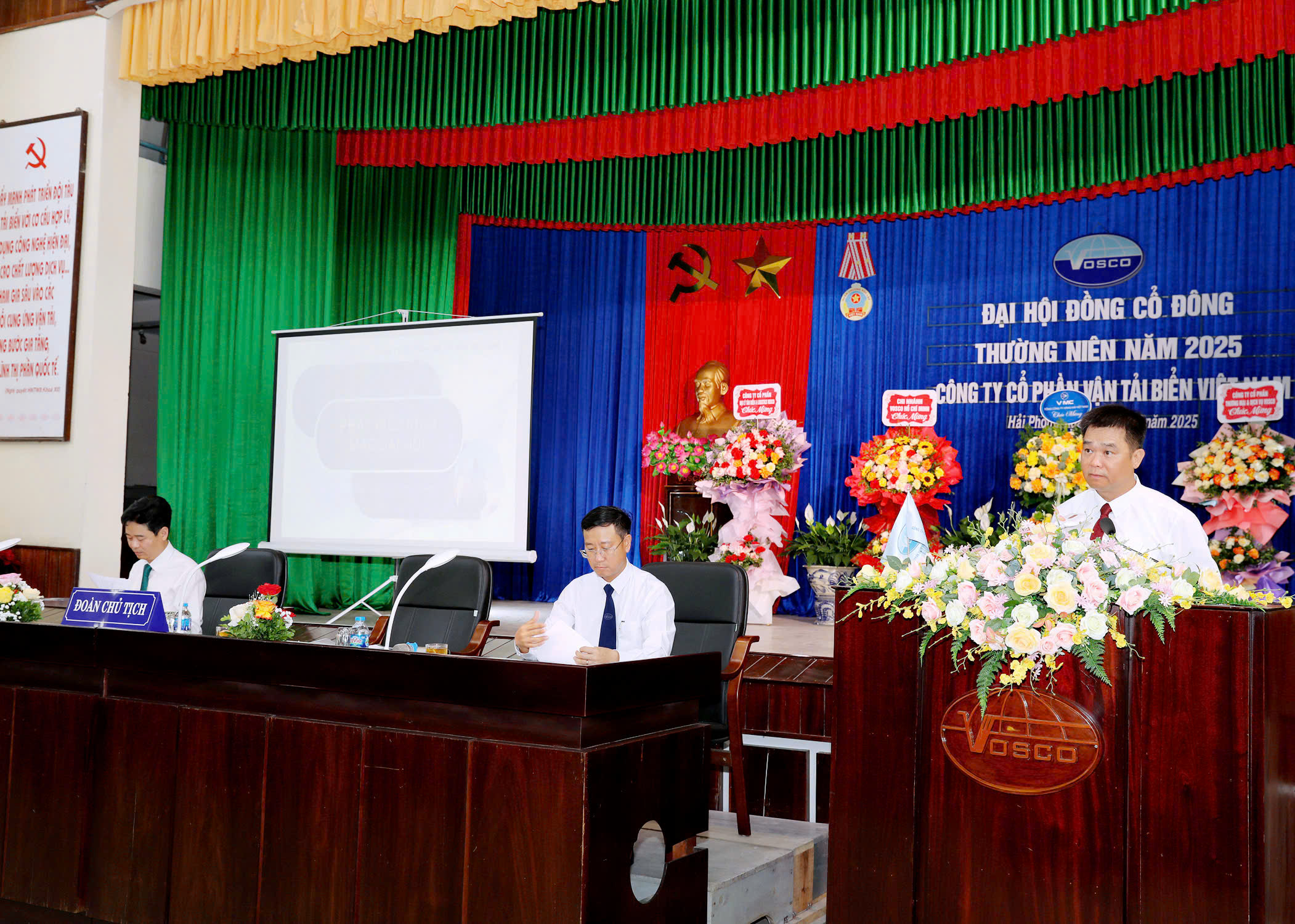 Báo cáo với các cổ đông tại Đại hội, ông Hoàng Long - Chủ tịch Hội đồng quản trị VOSCO cho biết: Năm 2024, VOSCO đã đạt được kết quả kinh doanh ấn tượng, với tổng doanh thu đạt 6.050 tỷ đồng, bằng 247,95% so với kế hoạch, lợi nhuận trước thuế đạt 418 tỷ đồng, bằng 129,41% so kế hoạch. Đặc biệt, sau nhiều năm không đầu tư được tàu, năm 2024, Công ty đã mua tàu hàng rời Vosco Starlight, trọng tải theo mớn nước mùa hè và nhiệt đới tương ứng là 55.868 DWT/57.378 DWT đóng năm 2011 tại Nhật Bản, đã nhận tàu và đưa vào khai thác từ tháng 01/2025. Công ty sẽ tiếp tục nhận tàu hàng rời Teleri M (tên mới là Vosco Sunlight), trọng tải theo mớn nước mùa hè và nhiệt đới tương ứng là 55.851 DWT/57.361 DWT đóng năm 2013 tại Nhật Bản vào cuối tháng 4/2025. Đây cũng là minh chứng rõ nét cho cam kết phát triển, hiện đại hóa và nâng cao năng lực đội tàu. Bên cạnh việc nỗ lực để đảm bảo việc sản xuất kinh doanh chính ổn định, an toàn, hiệu quả, Công ty tiếp tục tham gia một cách có hiệu quả vào hoạt động thương mại, xuất nhập khẩu để có thể giành được quyền vận chuyển/thuê tàu và có sẵn nguồn hàng ổn định.