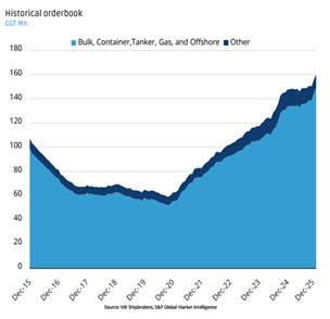 - Các đơn đặt hàng trong năm 2025 tiếp tục gia tăng và lượng tàu được đặt đóng cao nhất kể từ năm 2008