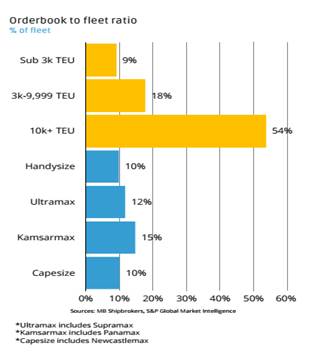 Biểu đồ Tỷ lệ đơn đặt hàng so với đội tàu hiện có (tàu container và hàng rời)